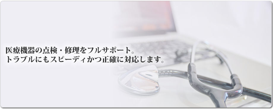 医療機器が高度化・多様化する中、そのメンテナンスには専門的知識と高い技術力が求められます。 私たちは確かな知識と技術力で、お客様に『安心』と『安全』、そして『笑顔』をお届けいたします。